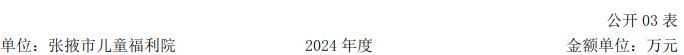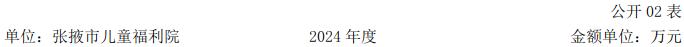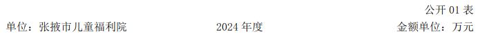 张掖市儿童福利院为财政全额拨款科级事业单位,隶属市民政局管理,事业单位改革分类为公益一类事业单位,执行事业单位会计制度,核定事业编制14名,2024年年末有事业编制在职人员14人,为财政补助人员。因业务开展需要,聘用医疗康复、特教养育相关业务的专业工作人员41名,年末实有人数55人。张掖市儿童福利院是一所集残疾儿童特殊教育,孤残儿童集中供养、医护康复为一体的综合性儿童福利机构,承担着全市孤残儿童集中供养、教育、康复服务工作,下设6个科室,分别是: