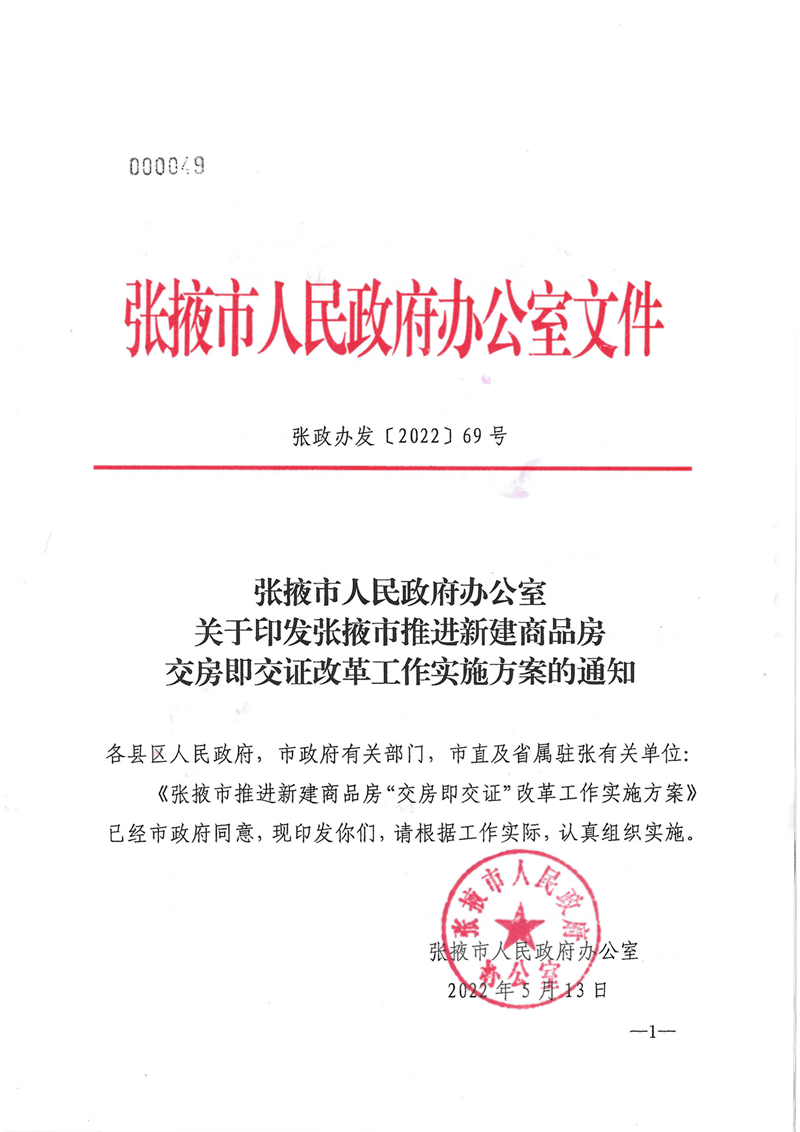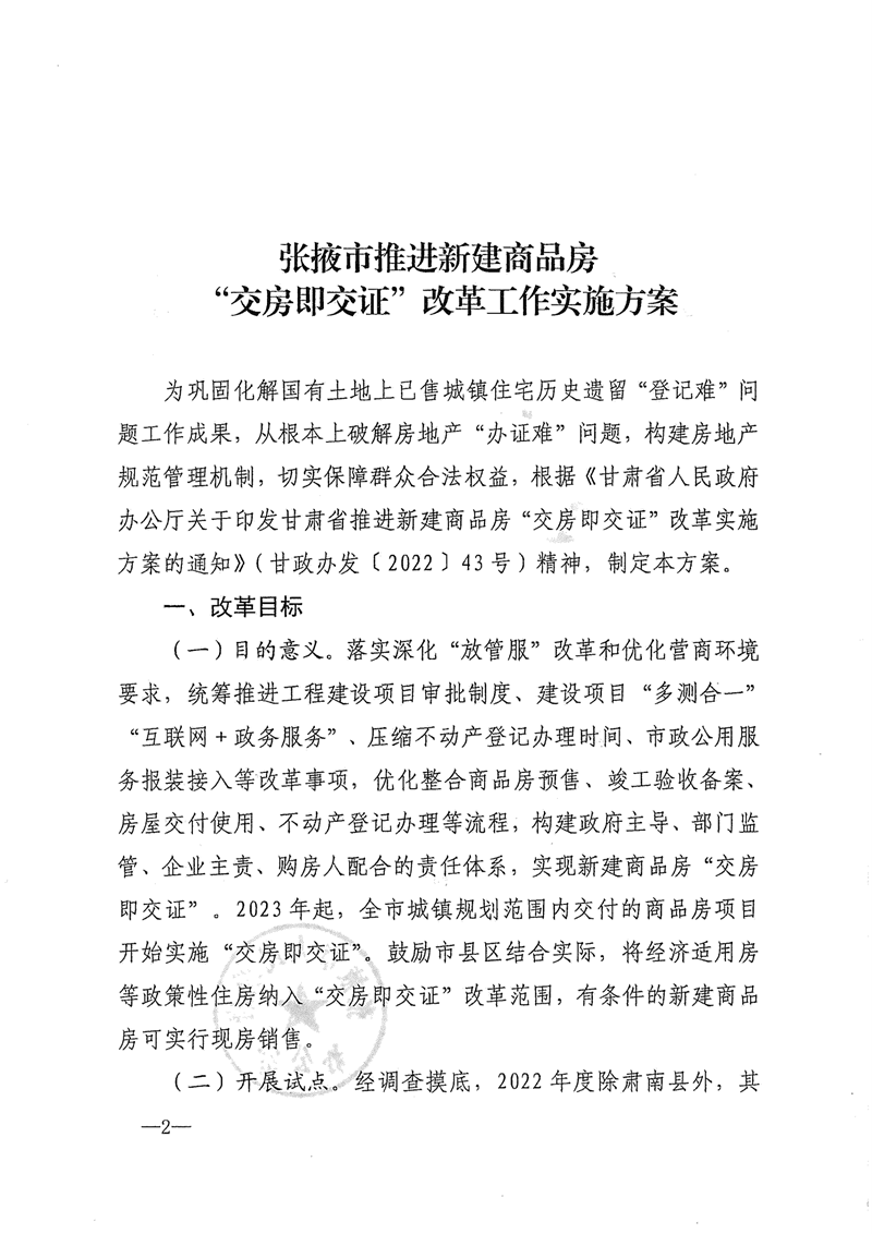 政策解读:关于张掖市推进新建商品房交房即交证改革工作实施方案的政策解读