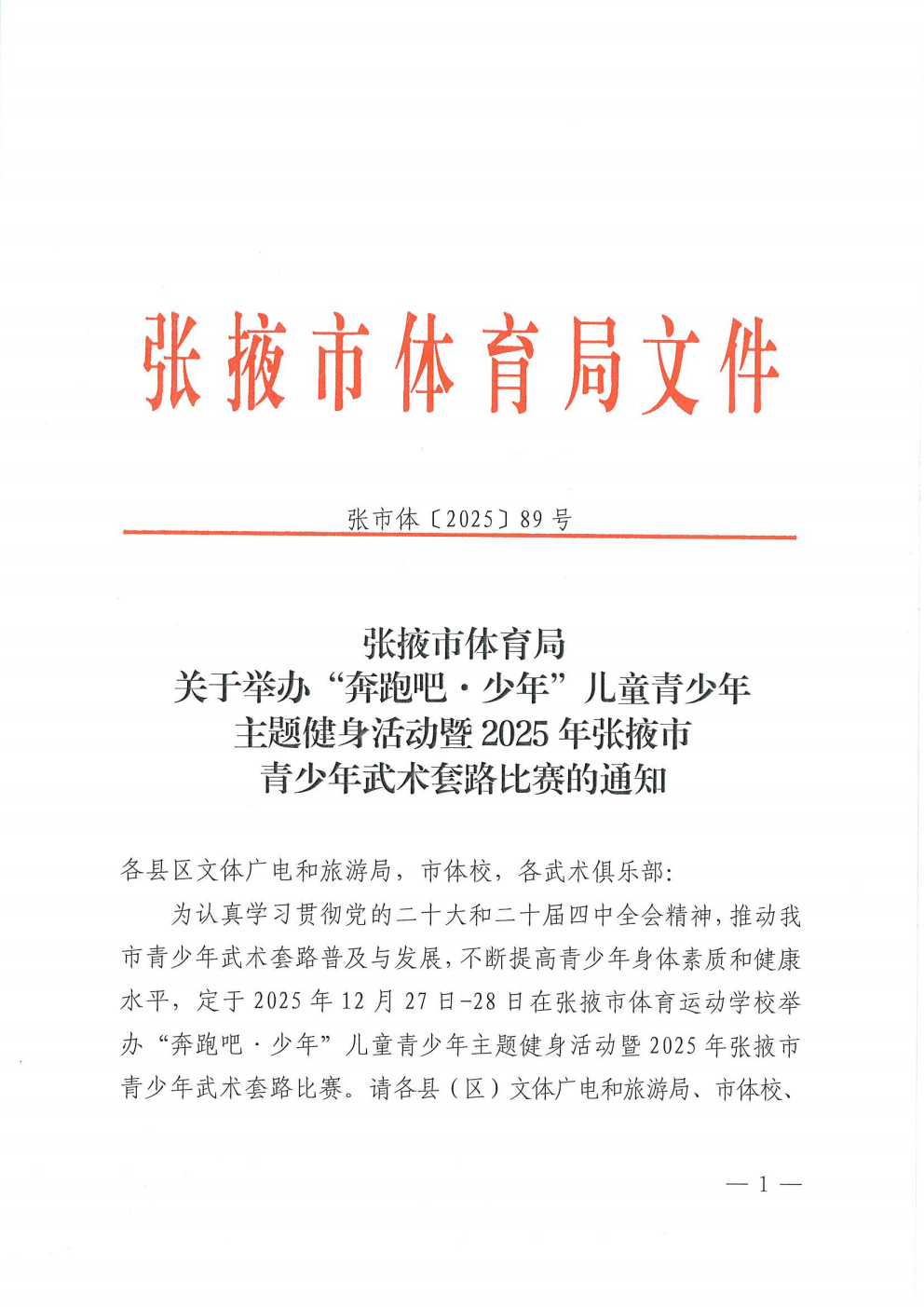 张市体〔2025〕89号 张掖市体育局关于举办“奔跑吧·少年”儿童青少年主题健身活动暨2025年张掖市青少年武术套路比赛的通知.pdf