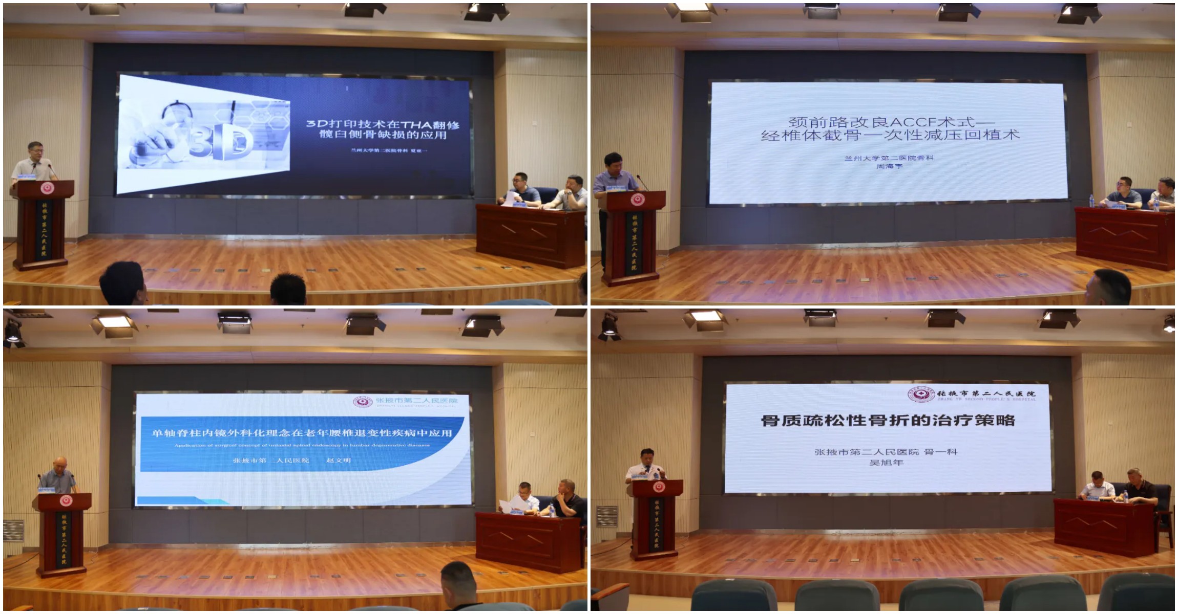 会上,兰大二院骨科首席专家、兰州大学第二临床医学院骨科教研室主任、甘肃省骨关节疾病研究重点实验室主任夏亚一教授,甘肃省医学会运动医学专业委员会委员、VIP外科副主任、骨二科副主任周海宇教授,兰州大学第二医院药学部药品监管科主任、临床药学亚学科带头人、国家卫生健康委员会抗菌药物临床应用监测网用药合理性中心评价组专家赵慧教授,兰大二院骨科四病区行政主任、中华医学会显微外科学分会青年委员,中华中西医杂志常务编委刘京升教授,甘肃省医师协会关节外科专业委员会秘书,甘肃省医师协会关节外科专业委员会委员王红教授,甘肃省医学会运动医学专业委员会秘书、甘肃省医师协会关节外科专业委员会委员、医学博士、硕士研究生导师赵良功教授分别以《3D打印技术在THA翻修髋臼侧骨缺损的应用》《颈前路改良ACCF术式——经椎体截骨一次性减压回植术》《围手术期预防用抗菌药物的合理选择》《复杂肘关节骨折脱位的诊治》《前交叉韧带股骨足印区重建技术——体外生物力学研究及初步临床应用》《关节置换围手术期准备》为主题进行精彩讲座,从病例分析、手术适应症、技术优势、术后功能恢复、药物规范使用、医学人文等方面传授诊疗经验和手术技巧;张掖市第二人民医院骨科团队围绕骨科领域的前沿问题、常见问题、焦点问题展开高水平的讲解和深层次的讨论,与会人员受益匪浅。