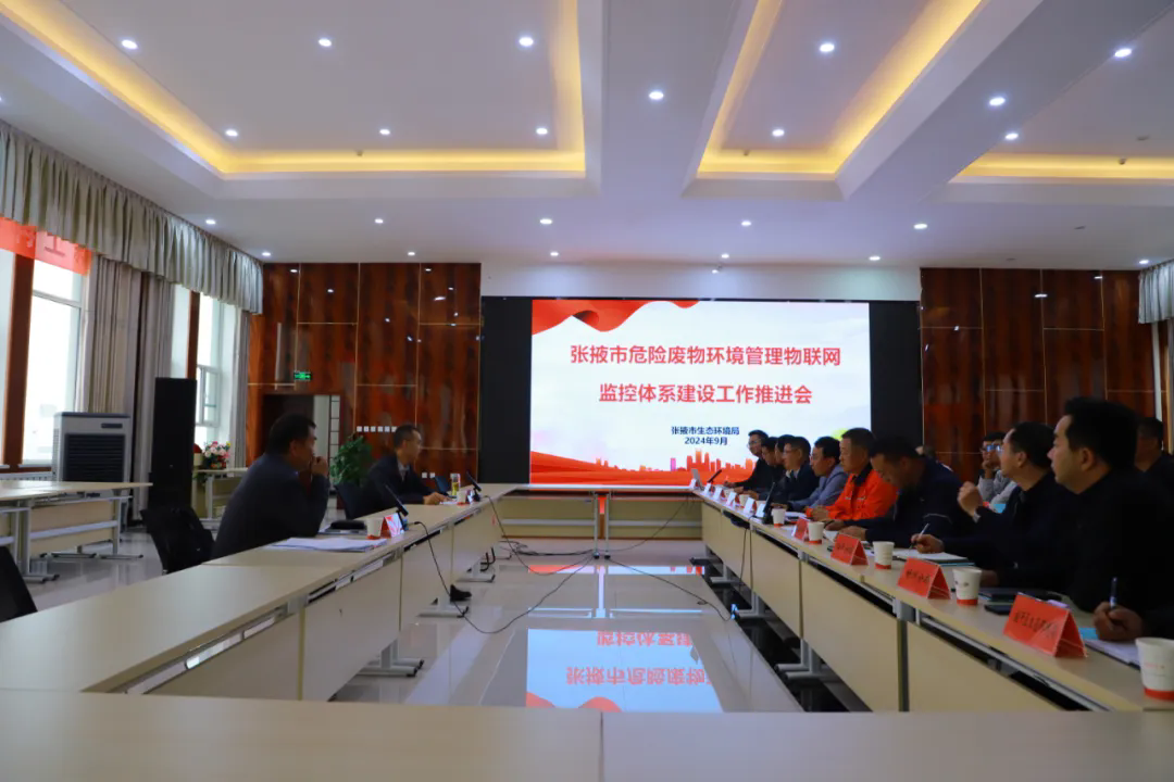 近日,全市危险废物环境管理物联网监控体系建设工作推进会议在高台县召开。高台县政府、市生态环境局相关负责同志和市生态环境局各县区分局、张掖经济技术开发区生态环境局分管负责同志以及涉及危险废物产生、处置、经营的18家单位企业负责同志共40余人参加会议。