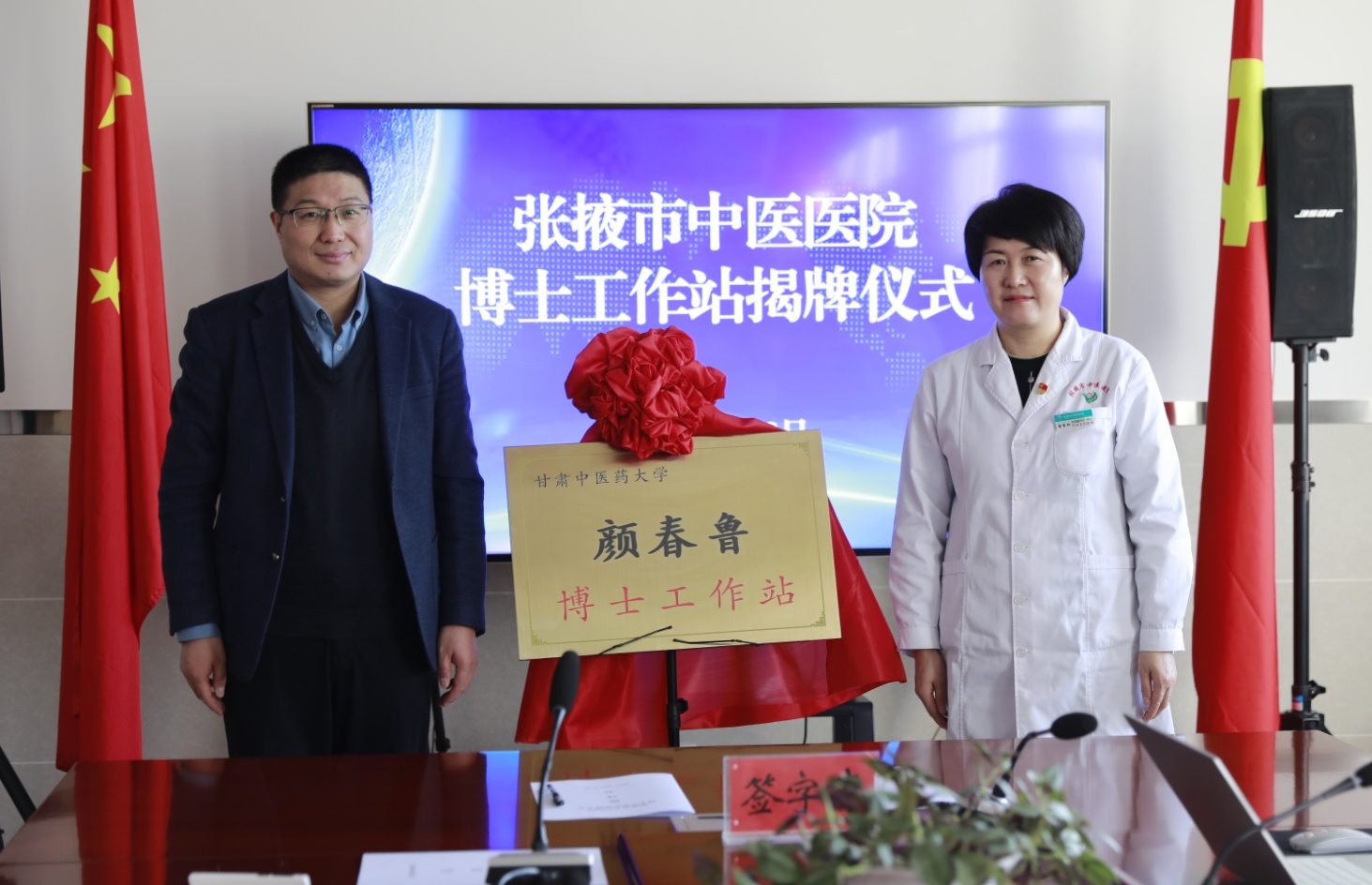 近日,张掖市中医医院举行甘肃中医药大学博士工作站揭牌仪式暨学术会议。医院党委书记张奋杰出席并致辞,张掖市科学技术协会党组成员、副主席任铂出席并讲话,医院党委副书记、院长雷秀虹和甘肃中医药大学颜春鲁、高建德两位博士分别揭牌并签订合作协议。院领导班子成员及相关科室负责人、研究生代表共同见证这一重要时刻,党委委员、副院长张居东主持。