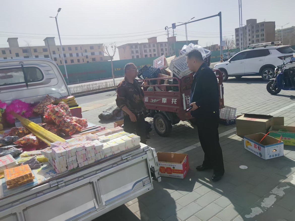执法人员针对售卖祭祀用品店铺的店外经营、沿街摆放等行为主动进店向商家宣传城市管理规定,督促其严格落实“门前三包”责任制,规范经营。针对流动摊贩占道经营,执法人员采取定点值守与流动巡查相结合的方式,对祭祀场所、主要路段和人流密集区域进行重点管控。坚持以教育引导为主,帮助流动摊贩认识到占道经营的危害,并引导他们进入指定区域经营,及时疏通拥堵路段,确保道路畅通无阻。