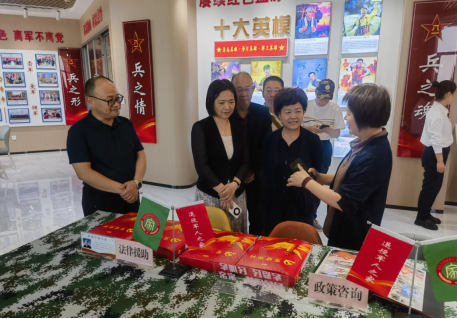 在甘州区双拥主题街区,调研组对张掖市爱国拥军促进会积极整合社会资源,依托现有产业打造“老兵,张掖欢迎您”社会化拥军品牌,为退役军人及军属提供就业岗位、开办拥军超市等社会化拥军新路径等做法给予高度肯定和赞赏。