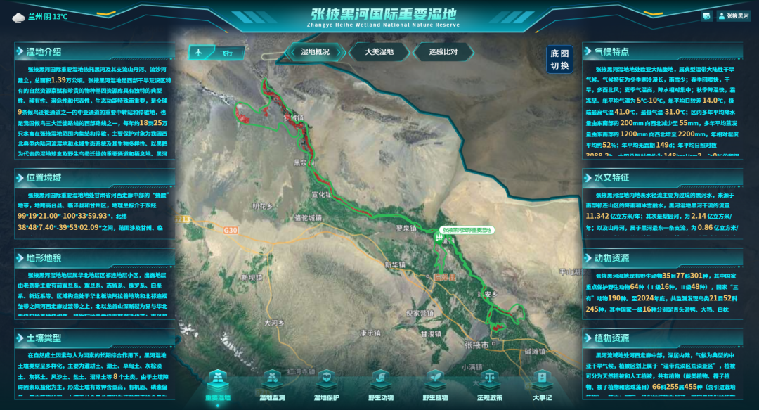 卫星遥感全域扫描、无人机空中巡查、地面设备实时监测、智慧平台一键管控……如今的张掖黑河湿地国家级自然保护区,一套“天空地网”一体化信息化监管体系正高效运转,实现了生态保护、执法监管与社区发展的良性互动新格局,为西北干旱区湿地保护提供了可复制的“智慧样本”。