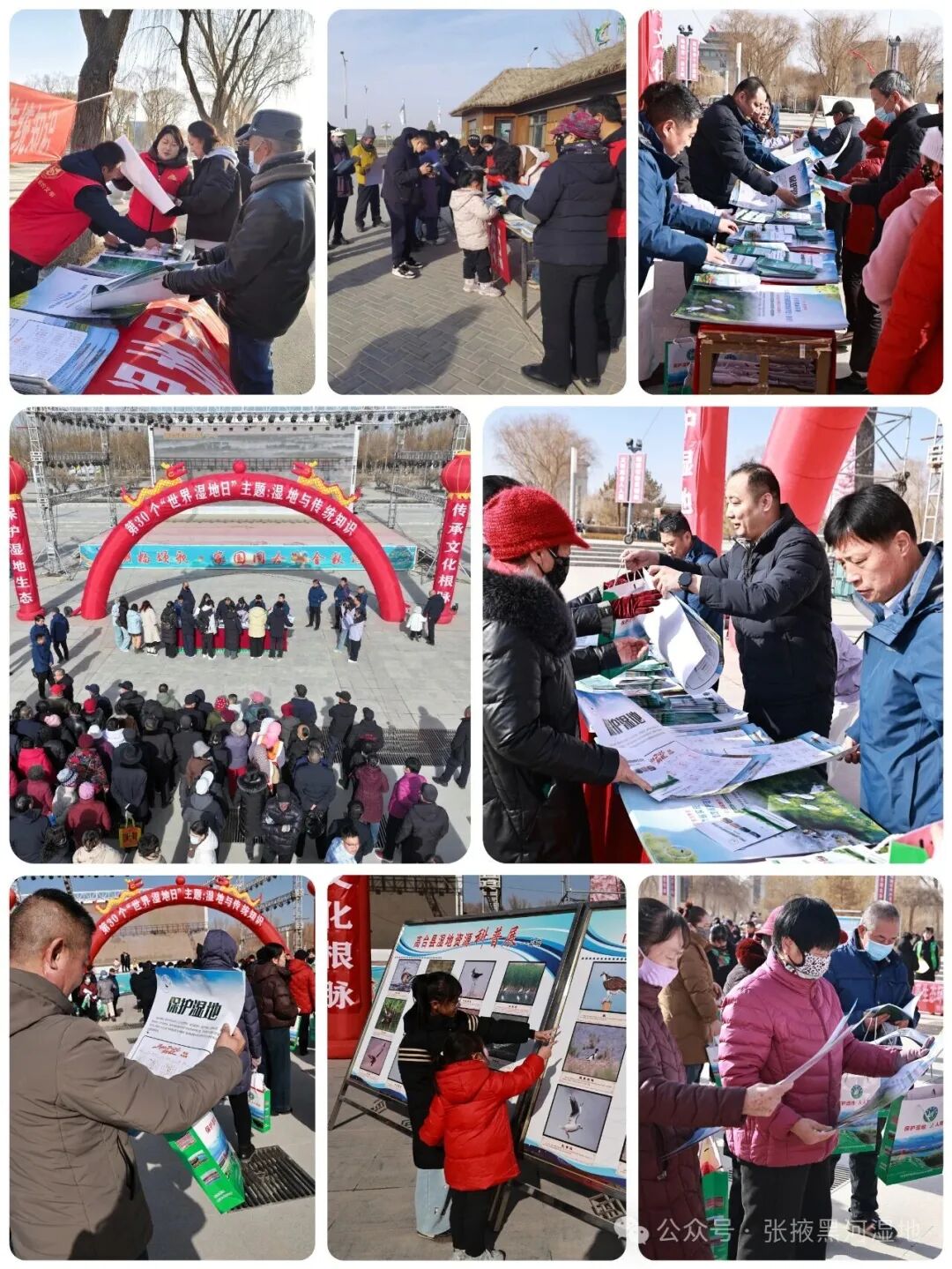 2月2日上午,张掖黑河湿地国家级自然保护区管理局联合市自然资源局、市生态环境局、市水务局、市林业和草原局及甘州区相关部门,在甘州区中心广场集中开展了“湿地与传统知识:致敬文化遗产”世界湿地日主题宣传活动。