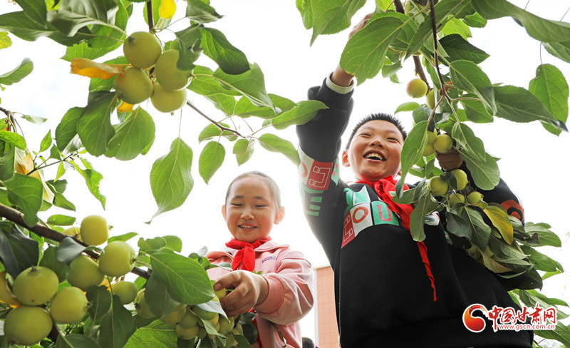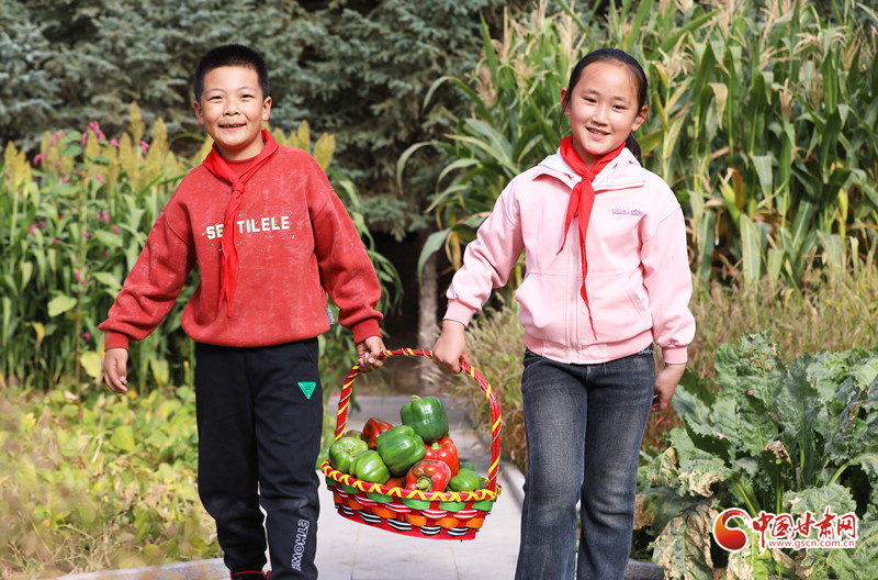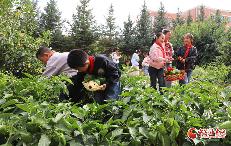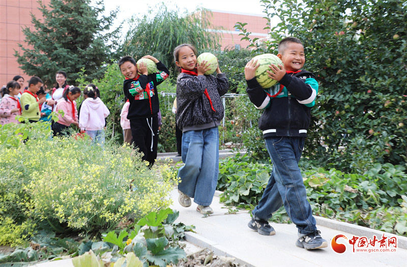 近日,民乐县金山小学举办校园“丰收节”,师生们在校园农场里采摘苹果、西瓜、辣椒、茄子等农作物,享受丰收的喜悦和劳动的快乐。