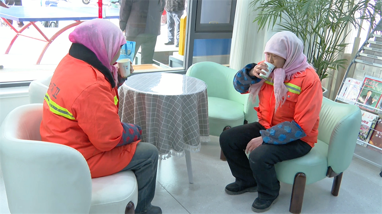 走进城关镇区域化党群服务中心的爱心驿站,座椅、茶几、书柜、饮水机、微波炉、医药箱、报刊架等基础设施应有尽有。刚结束工作的环卫工郭翠芳与工友来到这里一边喝热水一边刷着视频享受着闲暇时光。郭翠芳说,自从有了爱心驿站,她和同事们有了歇脚的地方,工作也更有干劲了。“我们活也干完了,进来这里歇歇腿、看看手机、喝些热水,这里面的空调也比较暖和,挺好的。”环卫工人郭翠芳说。