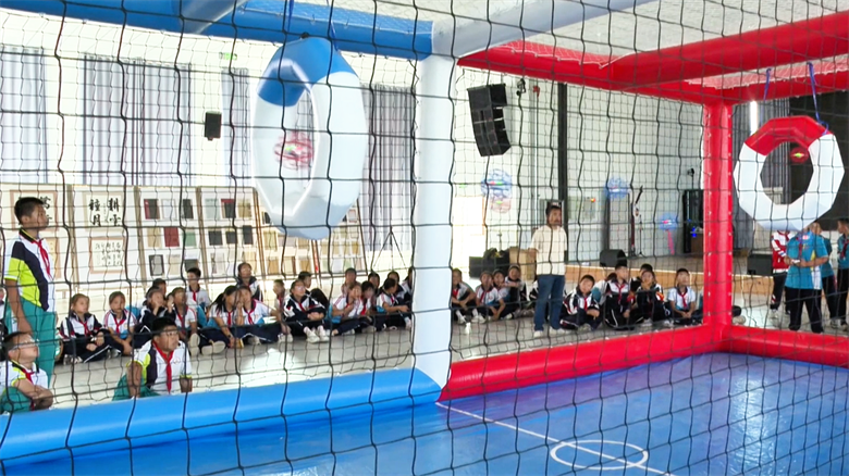 另一边的无人机足球比赛将科普氛围推向高潮,彩色无人机在场地中快速穿梭、不时碰撞,每一次灵活转向、每一次精准夺球,都让在场观众直观感受到科技带来的别样趣味。“比赛刚开始有点紧张,对方无人机飞得特别快,好几次差点把我们的‘球’抢走。后来我想起老师说的‘盯紧球、别慌神’,赶紧调整操控速度,和队友互相补位,连续进了好几个球,我感到特别开心。”运动员张峻毅如是说。