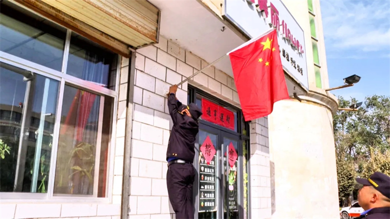 记者在城区各街道看到,工作人员正有序地将五星红旗悬挂在建筑墙体上。为确保悬挂工作安全规范,城市管理部门提前对重点区域进行安全排查。“我们提前排查了主干道、商圈的墙体安全,要求每一面国旗都挂得端正、展得平整,就是想让‘中国红’成为国庆最亮眼的底色,也让大家出门就能感受到浓浓的节日氛围。”高台县城市管理综合行政执法队东关中队副队长张欣说。