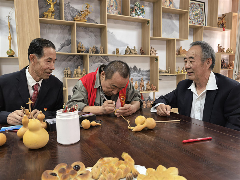 “月满华诞 非遗传承”体验区同样精彩,非遗传承人陈志正耐心地指导市民剪纸技巧。一旁的葫芦烙画摊位也围满了好奇的群众,大家认真聆听,亲手尝试,沉浸式体验非遗的独特魅力。现场展示的高台土月饼,更是勾起了许多人对往昔岁月和家乡味道的回忆。棋盘之上,对弈正酣。棋友们或凝神沉思,或从容落子,在楚河汉界的方寸之间交流棋艺,增进情谊。义诊服务台前,医疗专家们细致地为居民提供免费的健康检查,并讲解秋季养生知识,将贴心的健康服务送到群众身边。“第一次体验了麦秆画和剪纸,没想到这么有趣!这些传统技艺是我们的文化宝藏,今天亲手体验了,特别有意义,让我更热爱传统文化了。”市民殷小兰说。