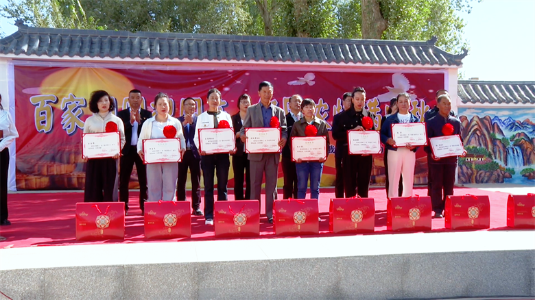 活动还通报表扬了一批经由村民推荐、评选产生的“好媳妇”“好婆婆”“好邻居”先进典型,慰问了村内的孤寡老人和困难群体,并为全体村民送上月饼,表达节日的祝福与关怀。同时,300余名村民洋溢着幸福的笑容,共同拍摄全村福,在镜头前定格温暖瞬间。“咱们办这个双节活动,核心就是想让全村人‘聚’起来,平时大家忙农活、务工,凑一起机会比较少,借百家宴让大家尝着邻居的菜、聊着家常,用文艺汇演添点热闹,就是要把淡了的邻居情捡回来,让村里更多人有‘家’的味道。”高台县合黎镇六一村党总支书记、村委会主任田伏宝说。