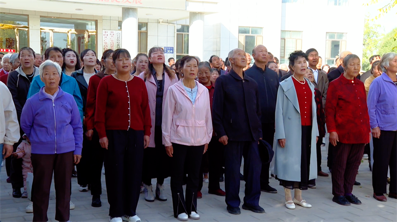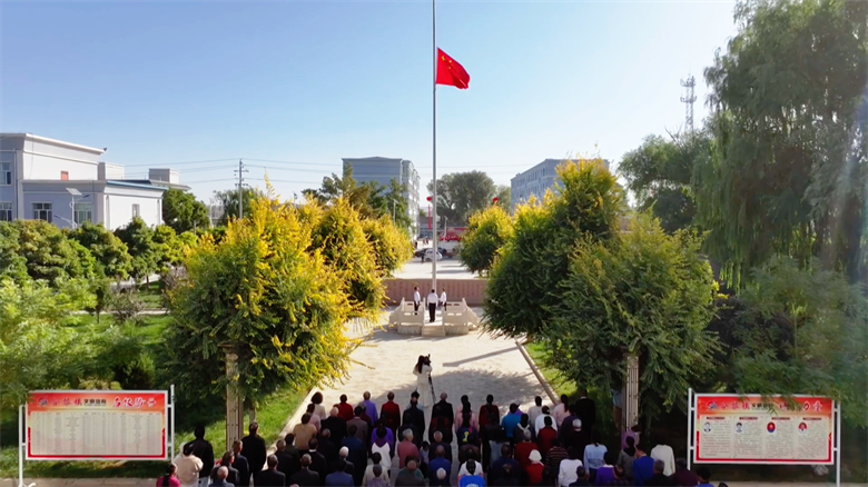 10月1日清晨,朝阳初升,高台县合黎镇文化广场上庄严肃穆,在300余名干部群众的深情注视下,鲜艳的五星红旗冉冉升起,一场朴素而真挚的国庆升旗仪式在这里举行,村民们以最质朴的方式向祖国母亲献上生日祝福。