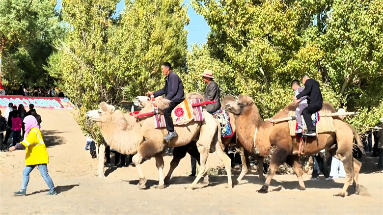 秋日的十坝胡杨林景区正值最佳观赏期,千亩野生胡杨褪去绿装,换上“金衣”,在大漠中展现出“生而千年不死,死而千年不倒,倒而千年不朽”的坚韧风采,吸引着八方游客前来赴这场千年之约。景区内,骆驼骑行体验区排起长队,游客们骑上骆驼漫步沙丘,感受大漠风情;舞台上,诗朗诵《九头胡杨的梦》《千年守望·胡杨》礼赞生命力量;滑沙、真人cs射击体验、美食品尝等项目让游客目不暇接,持续点燃假日激情。“今天,我和爸爸妈妈一起来到了胡杨林景区,我们不仅滑沙,还骑了骆驼,观看了文艺演出,我非常开心。”游客王歆艺说。