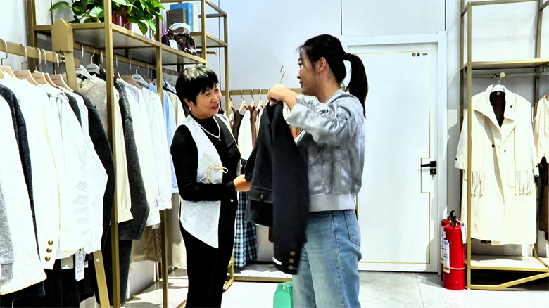“双节”期间,服装商城也迎来采购高峰,不少市民专程前来挑选应季服饰,为家人添置秋衣,商场内客流涌动,尽显节日里的消费热度。“天气冷了,又赶上中秋、国庆节活动,商城一直在搞活动,福利特别大,带家人过来添几件秋衣。”市民祁艳英说道。