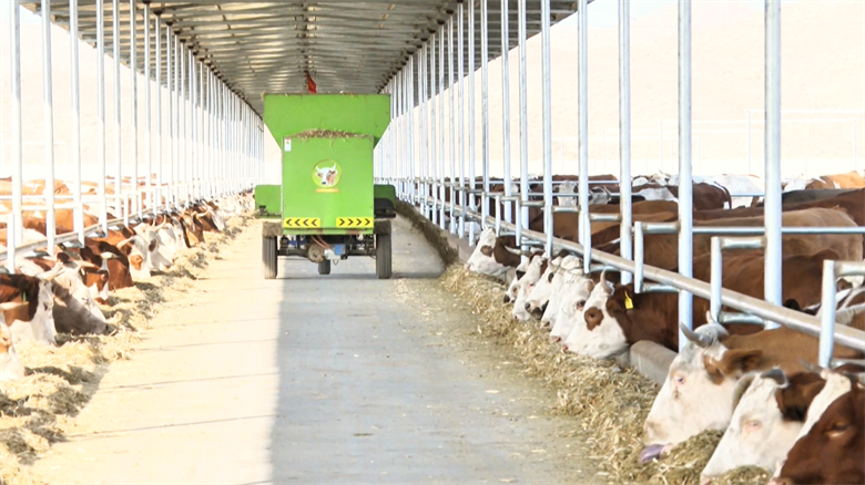 在合黎山脚下的千旺农牧实业有限责任公司养殖场,现代化畜牧业景象令人振奋。标准化牛舍整齐排列,数百头膘肥体壮的西门塔尔牛正悠闲进食。作为当地肉牛产业龙头企业,千旺农牧已建立起从良种引进、饲料营养、精细化管理到市场直销的成熟养殖体系。“截至目前,我们已出栏肉牛800头,每头售价约14000元,现存栏量2187头。”养殖场场长沙仲移介绍。