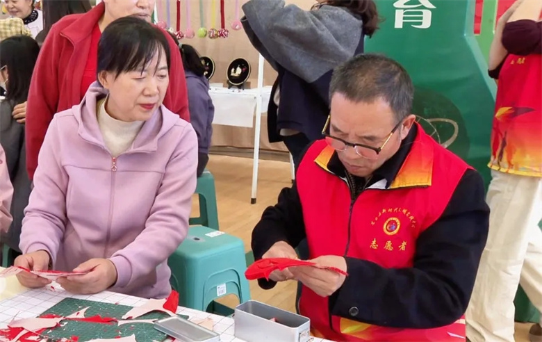 “剪纸不仅是手艺,更是情感的寄托。”市级非遗传承人王建华一边指导老人制作重阳题材剪纸,一边介绍,“希望老人们从中感受到社会的关怀与温度。”