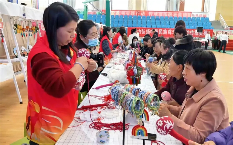 活动现场,“非遗巧韵”互动体验区吸引了不少老人驻足。剪纸、香包制作、长寿结编织等重阳主题手工艺项目,在非遗传承人的指导下,成为老人们亲手创作的作品。一剪一缝一编之间,传统文化与敬老情感巧妙融合。