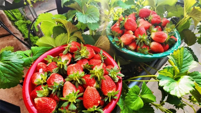 大棚内,一垄垄草莓整齐排布,翠绿的藤蔓间,熟透的草莓与洁白的花朵相映成趣,浓郁的果香扑面而来。为确保草莓品质,合作社秉持绿色种植理念,采用蜜蜂授粉、有机肥培育的方式,从源头提升果实口感。同时,借助水肥一体化技术实现精准灌溉施肥,并科学调控棚内温湿度,让草莓在初冬时节顺利成熟。“我们9月份就开始育苗移栽,通过精细化管理保障产量和品质,现在每天都有不少市民前来采摘,销路特别好。”合作社负责人田会玲介绍道。