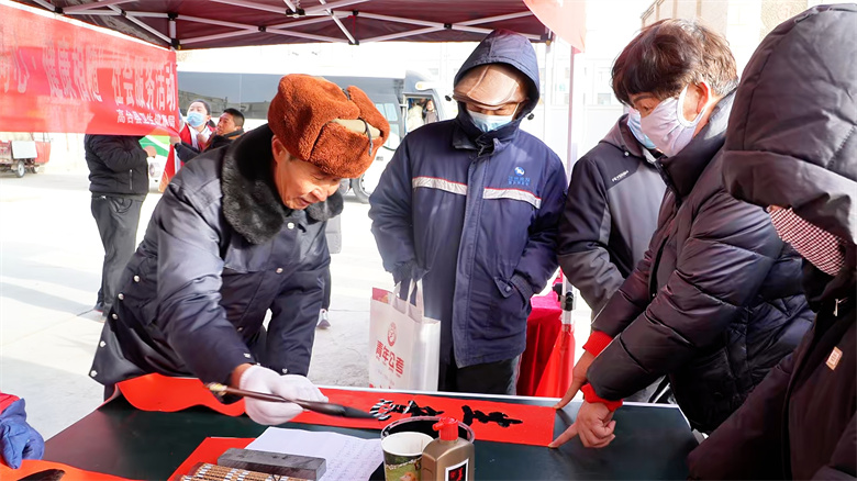 翰墨飘香添年味,温情服务暖人心。县书协、摄协志愿者现场挥毫泼墨,书写春联、赠送福字,为村民拍摄全家福、老人肖像照,用镜头定格一个个幸福瞬间;健康义诊区前,医疗专家为村民免费测量血压、血糖,细致讲解冬春季常见疾病预防知识,提供健康指导。“这春联写得很喜庆,全家福拍得很精神!在家门口就能领到这么贴心的年味,今年的春节可太有盼头了,心里头热乎得很。”市民王贵明难掩喜悦。活动现场还备好热乎的腊八粥,让群众在参与活动的同时感受舌尖上的暖意,“今天不光有写春联、看演出这些热闹活动,还能喝上这热乎的腊八粥,甜丝丝地暖到胃里了,这么多贴心的事儿都凑到一块儿,这年过得可太舒心啦。”市民马雪梅的话语里满是满足。