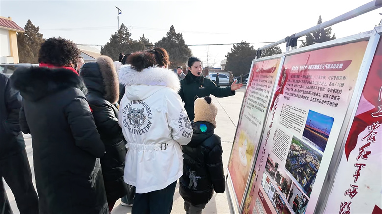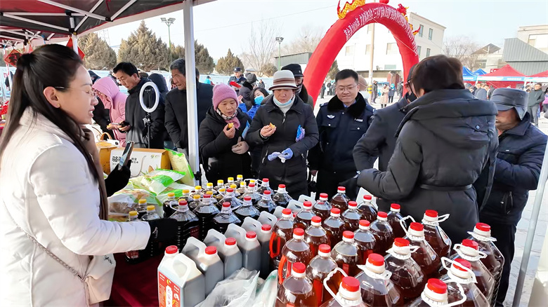 活动现场划分室内外多个功能区域,各部门政策咨询台依次排开,工作人员围绕乡村振兴、反诈普法、医保政策等热点问题,为群众现场答疑解惑、普及实用知识;科普展区内,机器狗互动、科普小实验等趣味项目,让村民近距离感受科技魅力;非遗展示区里,葫芦烙画、剪纸、绳编等非遗技艺轮番展演,村民亲身参与体验,沉浸式感受传统文脉底蕴。“好物赶大集 书香伴年味”年货市集上,本地优质农特产品集中展销并同步开启直播带货模式,助力农产品拓宽销路、提质增效。“年货市集上的农特产品都是咱本地的,新鲜又实惠,还能看文艺演出、体验非遗文化,家门口就能享受到这么多服务,政府想得太周到了。”市民张丽芳笑着说道。