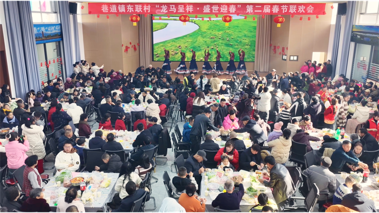 春潮涌动乡村暖,欢歌笑语庆新春。2月12日,高台县巷道镇东联村第二届春节联欢会热闹启幕,40口火锅香气氤氲,全村父老乡亲围坐一堂,赏文艺、品美食、话家常、送祝福,在欢声笑语中感受浓浓年味与乡村温情,共庆新春佳节,共话乡村振兴新图景。