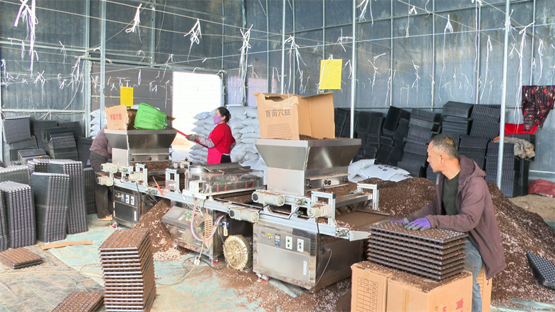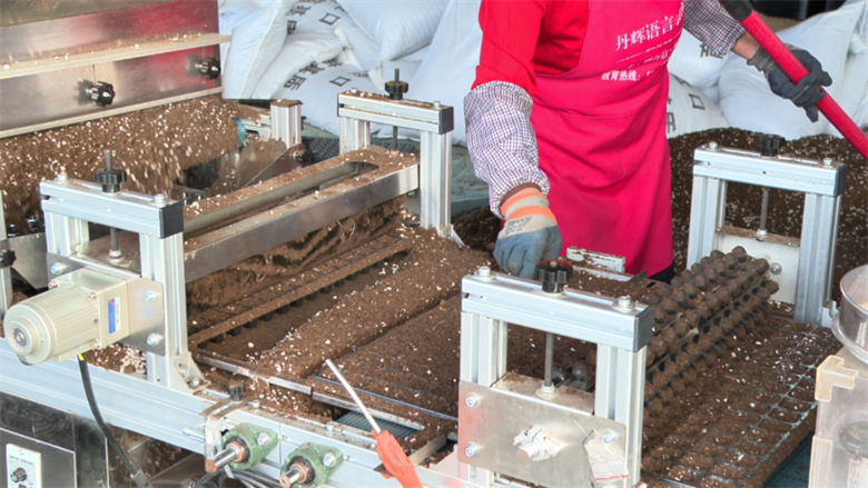 眼下正值辣椒育苗的关键时节,在宣化镇贞号村的高标准智能温室大棚里,一台半自动育苗机正全速运转,工人围坐在机器旁,紧张有序地进行基质装填、精量点籽、苗盘覆土等作业。与传统人工育苗相比,机械化装盘点穴实现了“一穴一粒”的精量播种,不仅大幅提高了效率,更保证了出苗的整齐度和成活率。