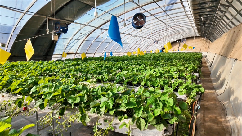 作为国家级示范农民专业合作社,这里草莓、黄瓜、西红柿、葫芦、西芹等果蔬长势喜人、供销两旺。合作社依托物联网、水肥一体化等智能系统,告别“凭经验种地”的传统模式,走上精细化、科学化种植之路。通过科学轮茬,有效提升土地利用率和产出效益,让大棚成为增收“聚宝盆”。“我们的温室采用轮茬种植,有的一年轮三茬,有的一年轮二茬,这样下来一个温室一年收入6—7万元。”合作社副理事长刘兴红说。