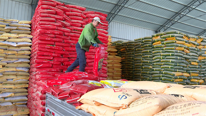 农资供应是春耕生产的重中之重。在固信农资经营部的仓库内,尿素、磷肥、复合肥等各类肥料分类整齐堆放,堆垛如山。工人们各司其职,有条不紊地装卸、搬运化肥,确保物资能够及时配送至田间地头,满足农户春耕用肥需求。