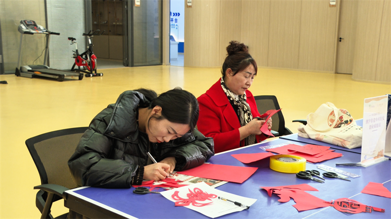 除了灯谜竞猜,活动现场还设置了多个特色体验区,让职工群众在动脑之余也能动手体验。在非遗体验区,专业老师正指导职工子女剪制窗花、骏马等红色文化元素图案,一旁的漆扇创作台前也排起了长队,大家在一笔一划、一剪一刻中感受传统文化的匠心传承。科普流动站内,机器人展演和科普板画吸引了不少孩子驻足,县科协工作人员现场讲解,让科普知识变得触手可及。
