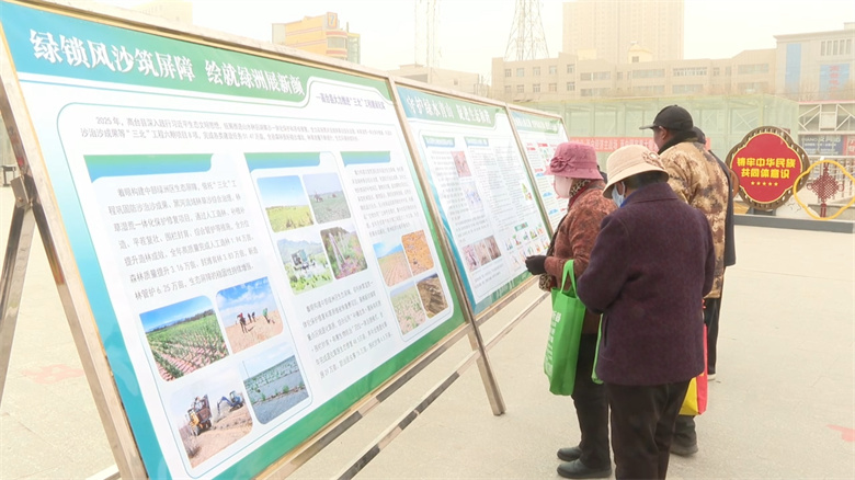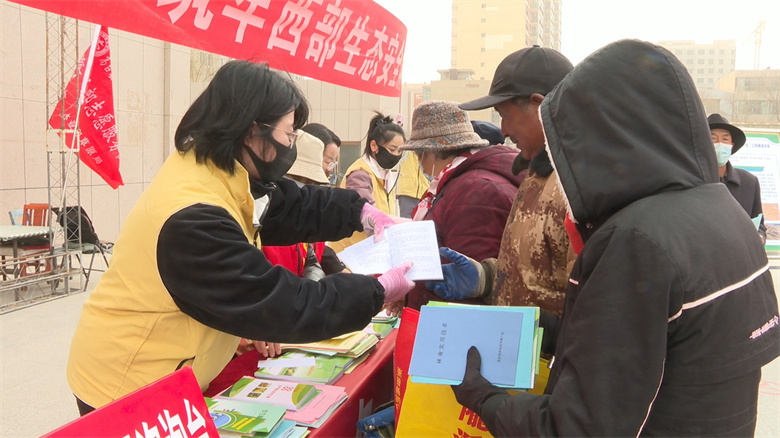 活动现场,醒目的宣传横幅迎风招展,内容丰富的主题展板整齐陈列,吸引了不少群众驻足观看。工作人员通过发放宣传资料、现场答疑讲解等形式,向过往群众普及“三北”工程建设、国土绿化、林草资源保护等知识,细致阐释植树造林在防风固沙、调节气候、维护生态平衡中的重要意义,引导群众自觉践行爱绿、植绿、护绿的文明理念。