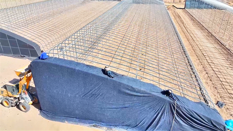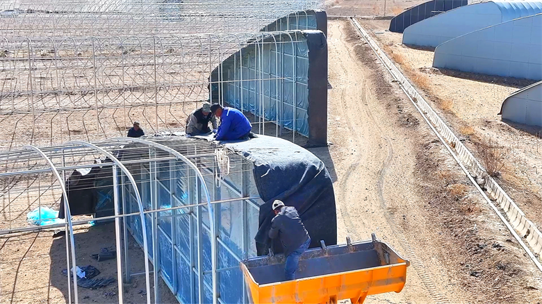 一边是一期大棚的育苗工作有序推进,一边是基地二期工程建设热火朝天。在二期建设现场,一排排钢架鳞次栉比、挺拔矗立,工人们正加紧进行包棚头、铺棚膜及棚内拉沙拉粪、土壤改良等作业,阳光映照下的钢架大棚,勾勒出蔬菜产业园的发展新轮廓。