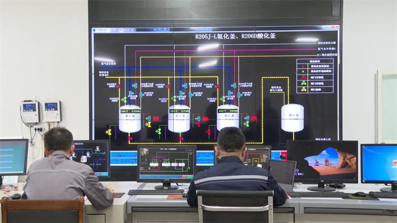 在甘肃永鸿染化有限公司中控室内,工作人员正全神贯注地紧盯屏幕,熟练监控和调整控制台参数,确保生产线安全平稳运行。自复工复产以来,公司主要产品J酸出货不停,截至目前,今年产值已达2000万元以上。公司总经理祁恩东表示,目前市场有所好转,产品实现即产即销,大部分销往江浙一带,并出口至东南亚地区。