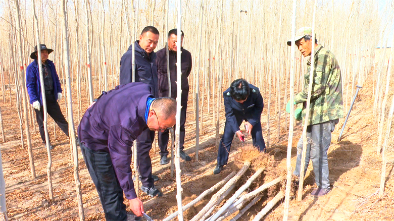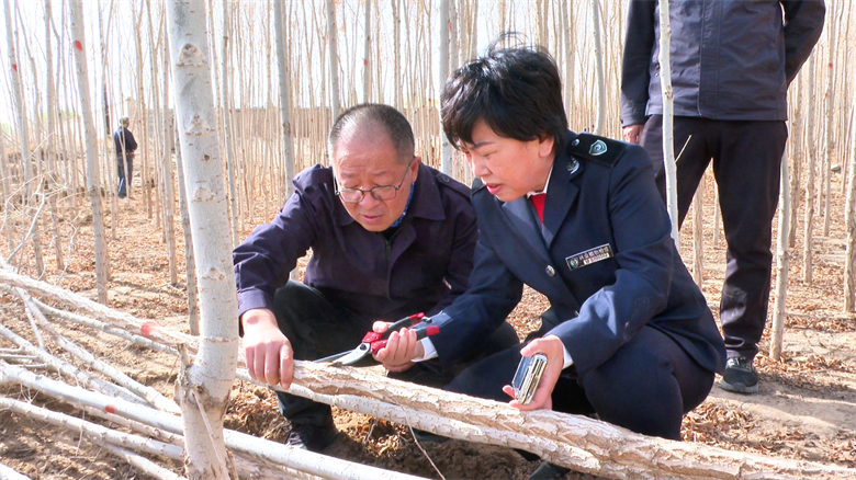 在国有三益渠林场,林业检疫人员正忙碌地对今春即将出圃的各类苗木进行现场抽样检查。技术人员仔细查看苗木根系、枝干,逐一记录苗木种类、数量及病虫害发生情况,确保每一株出圃苗木都符合质量标准。