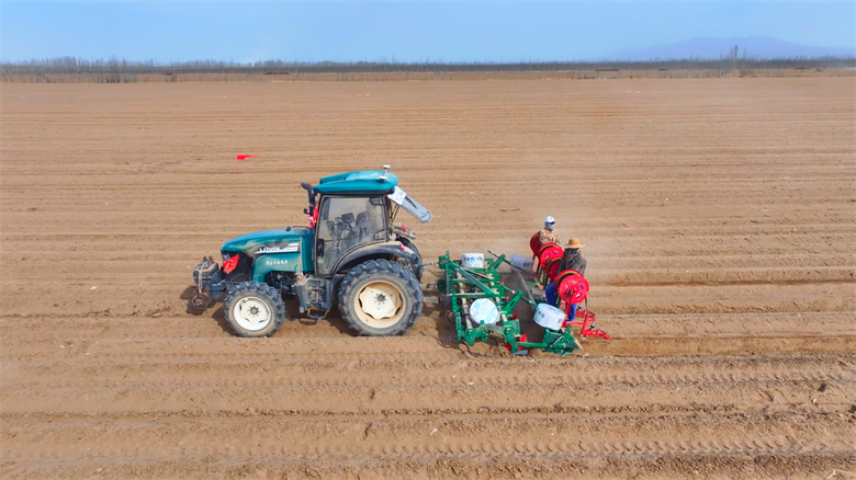 从漫天黄沙到千亩果园,循环农业的“闭环”远不止于此。公司依托良好的资源优势,大力发展水肥一体化,利用已建成的3000立方米沼气工程,推广“沼液+水肥一体”技术,借助滴灌管网将水溶性肥料精准输送到作物根部,适时适量满足农作物对水分和养分的需求,实现肥料效果最大化。目前,工人们正忙着播种马铃薯、铺设滴灌带,一派春耕繁忙景象。