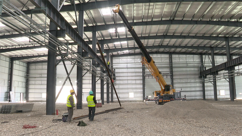 “目前主体钢构、墙面板材和室内水电安装进度已突破90%,我们正组织工人进行最后的地坪浇筑收尾和装修冲刺。”项目技术负责人张健身旁的对讲机里不时传来调度指令。他指着正在安装的行车设备说:“倒排工期、挂图作战,确保4月底完成所有实物量,5至6月就让这大车间里机器转起来!”