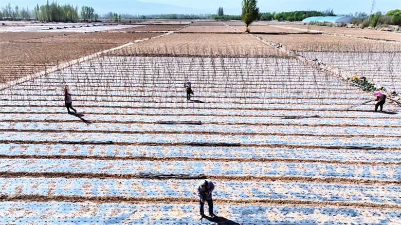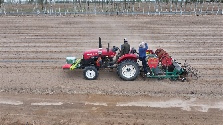 “自家30亩,又租了些地,今年一共种80亩辣子。”在骆驼城镇骆驼城村,村民李大龙一边开着铺膜机作业,一边算起了增收账。往年种辣椒,亩均收入6000元左右,效益可观。今年他早早备好地膜、滴灌带,趁着晴好天气抓紧铺膜,为辣椒移栽打牢基础。只见铺膜机驶过,施肥、铺膜、打孔、覆土一气呵成,机械化作业让老把式也轻松了不少。