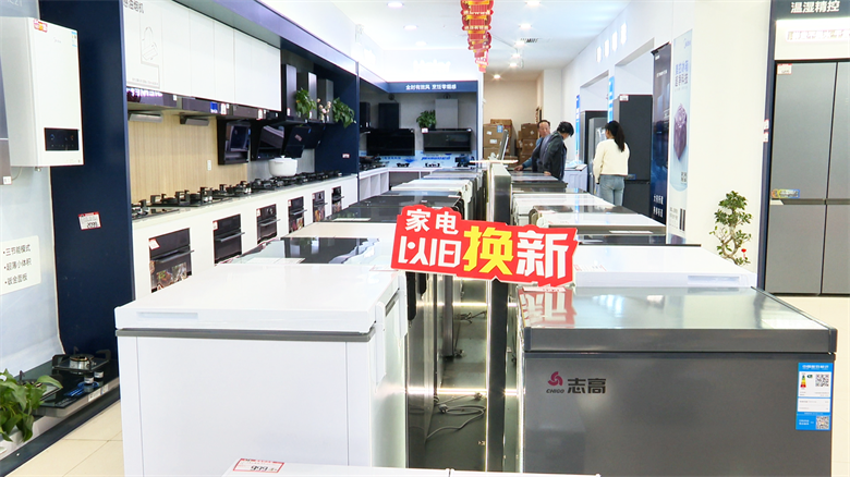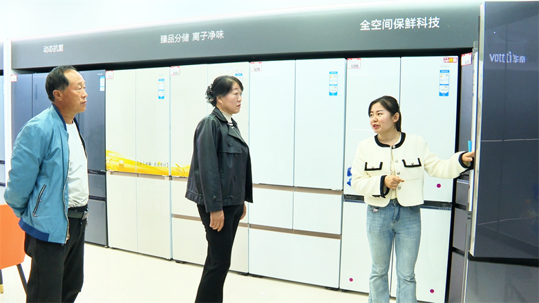 家电市场同样暖意融融。在县城一家家电卖场内,智能大屏电视、双开门冰箱、滚筒洗衣机等科技感十足的家电有序陈列,“以旧换新”标语格外醒目,吸引不少市民驻足咨询、选购,趁着优惠为家中电器更新换代。“我看了个冰柜,能享受15%的以旧换新补贴,能省三四百块钱。这款冰柜样式好、容量大,对我们农民来说特别经济实惠。”市民王银介绍道。