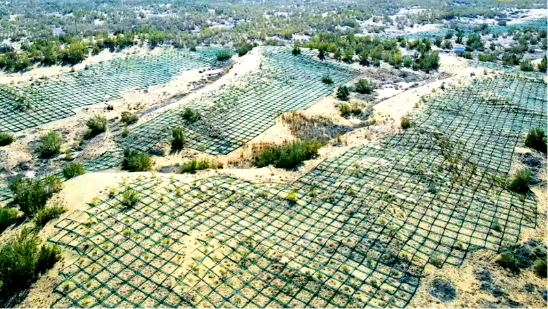 “现在在临泽应用推广的有一项是来自国家成果库的最新技术——低覆盖度治沙,它的好处就是节水的同时、保证地上植物持续利用,长久固沙。”12月22日,在临泽小泉子林场,甘肃省治沙研究所高级工程师王祺一行在验收临泽荒漠化国家级生态监测研究站建设项目时介绍道,自1993年以来,甘肃省治沙研究所在该县实施科研项目20多项,前后筛选出尼龙网沙障,聚乳酸纤维(PLA)沙障等防沙治沙新技术、新材料在临泽推广应用。并每年安排近10名科技人员长期驻守该地进行科学研究、定位观测、防沙治沙技术指导,精准助力临泽科学治沙。