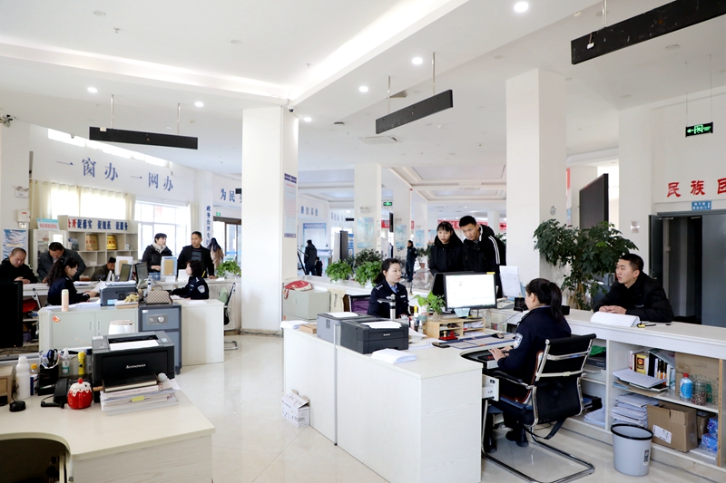 “今天是春节节后第一天上班,陆续有群众过来办理户政业务,在新的一年里,我们将继续坚守工作岗位,做好本职工作,树立良好的窗口文明形象,更好地为群众服务。”县政务服务大厅公安局窗口民警宋雪梅说。