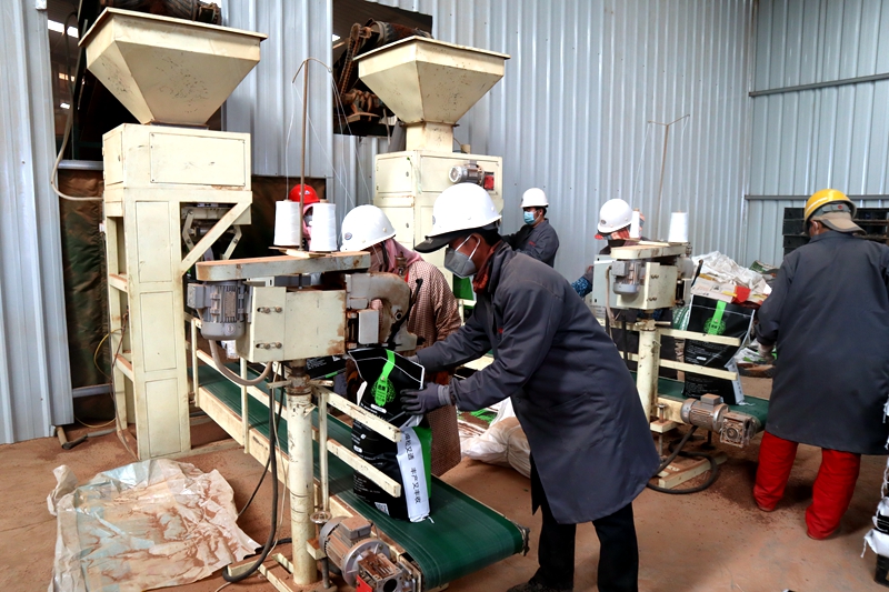 春来万物新,在临泽县奋君矿业有限公司生产车间,各条生产线开足马力加速运转,土壤调理剂、凹凸棒石有机肥等产品源源不断从生产线流出,工人们迅速抓取、封袋、搬运,忙碌在各生产角落。