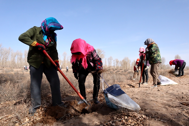 春风催新绿,植树正当时。近日,走进临泽县五泉林场,工人们两两协作,热情高涨,干劲十足。他们挥动铁锹、铲土填坑、扶直树苗、培实新土,动作娴熟流畅。