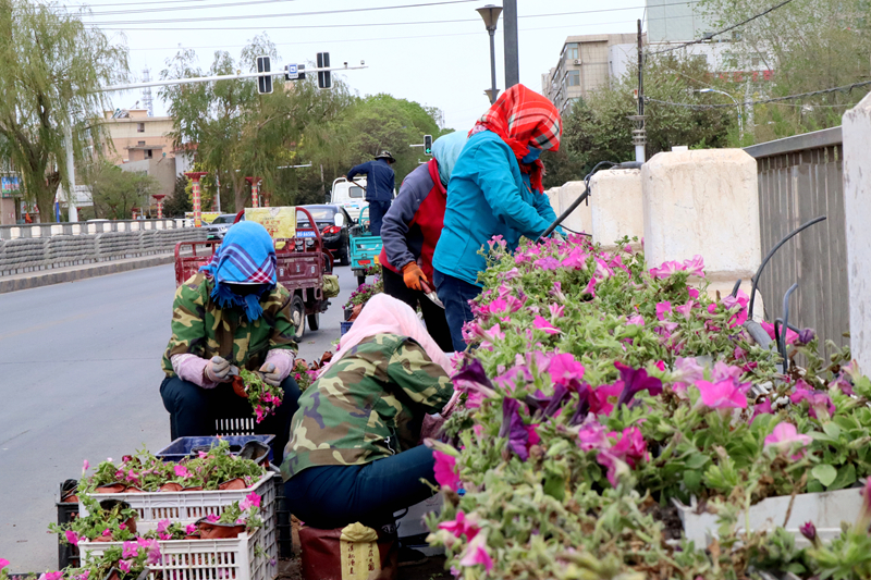 眼下正值绿化好时节,临泽县按下“美颜键”,以精细化、全覆盖的标准,在县域内公共绿地、公园等区域铺开花卉种植工作,为城市披上五彩霓裳,勾勒出生机勃勃的生态画卷。