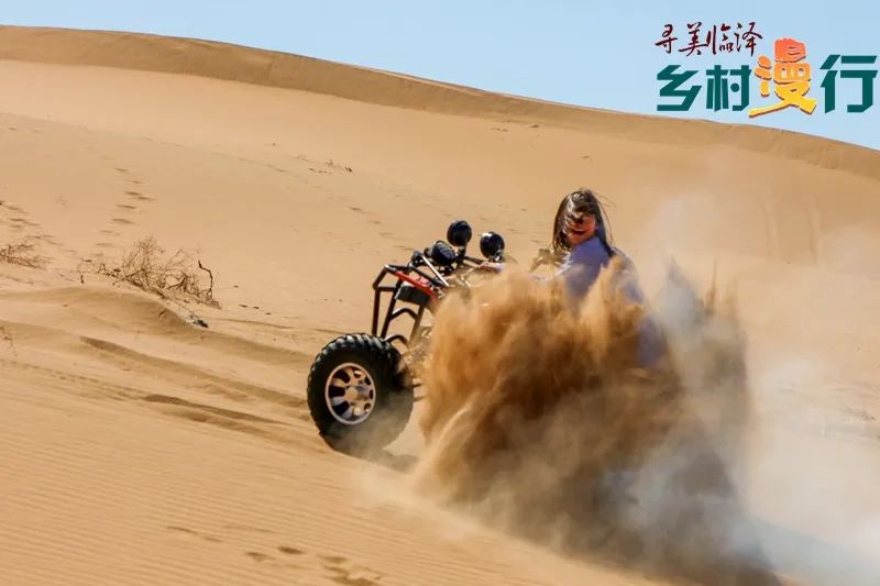 正午时分,烈日当空,沙海呈现出一种近乎白色的金黄,炽热而纯净。当寂静被引擎的轰鸣打破,金沙湾也展现出它狂野的另一面。沙滩摩托车在沙丘间飞驰,扬起长长的沙尾;卡丁车在专门设计的赛道上竞速,驾驶者的欢呼与马达的咆哮交织成沙漠交响曲;冲浪车从高耸的沙丘俯冲而下,带来几近失重的快感。这些现代机械的入侵非但没有破坏沙漠的原始美感,反而创造出一种超现实的画面——钢铁与金沙的碰撞,人类工程与自然造物的对话。
