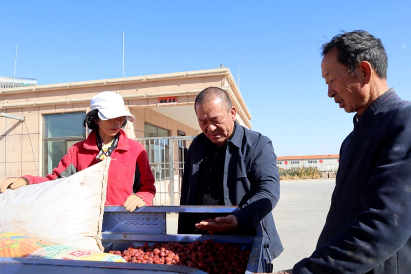 (县人大代表程金军和农户商谈红枣收购事宜)