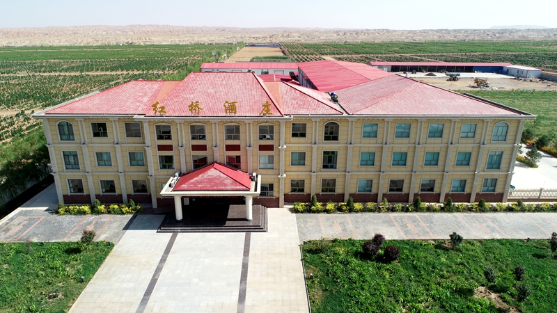 红桥庄园位于板桥镇古城村营坡滩,南临黑河,北倚合黎山,地处北纬38°黄金种植带,光热充足,又有祁连山雪水滋润,发展葡萄酿酒产业条件得天独厚。2014年,企业邀请西北农林科技大学、新疆农业大学等高校专家团队,从架型规划、地块整理到品种选育进行全流程科学设计,建成5000亩标准化酿酒葡萄基地,为产出高品质葡萄酒奠定坚实基础。