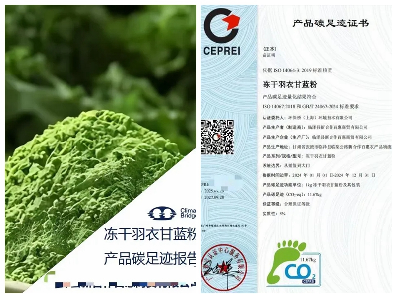 近日,张掖市临泽县新合作百惠商贸有限公司生产的冻干羽衣甘蓝粉,成功获得全国首例该品类“碳标签”认证。这张薄薄的标签,不仅承载着产品全生命周期的碳排放数据,更见证了临泽县在农业绿色转型道路上的扎实步伐,成为该县落实“双碳”战略、推动农业高质量发展的生动缩影。