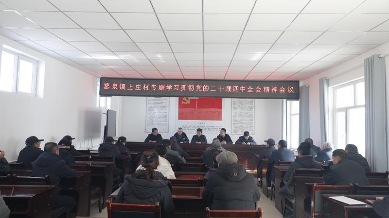 与此同时,蓼泉镇上庄村村委会会议室里座无虚席,一场党的二十届四中全会精神专题学习宣讲会正在进行。村干部围绕全会提出的关于乡村振兴、民生保障等重要部署,结合村庄实际和具体政策细致讲解,并现场解答村民疑问,让政策宣讲既有高度又有温度。