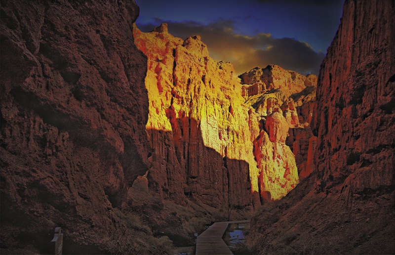 夜晚的临泽并未沉寂。我们如约前往观看《阿兰拉格达》光影演绎,这场演出仍然以丹霞岩壁为天然幕布,用灯光讲述裕固族传说。演出分为“源起·天地之彩”、“探寻·神秘山谷”等五幕,强烈的画面感让人仿佛进入奇异的梦幻世界。光影在亿年岩壁上流动,现代科技与古老地质奇迹结合,创造出超越时空的体验。这场演出已成为临泽夜游经济的重磅产品,许多游客特意选择傍晚入园,就为体验这场视觉盛宴。