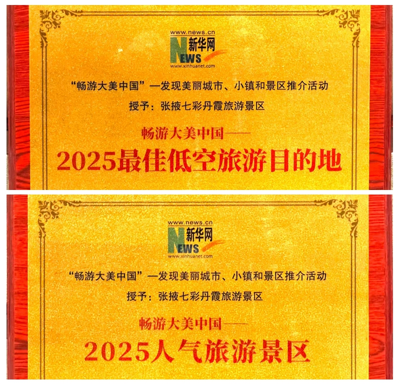 1月25日,由新华网主办的“畅游大美中国”——发现美丽城市、小镇和景区推介活动在北京揭晓荣誉榜单,张掖七彩丹霞旅游景区凭借卓越的品牌影响力与创新实践成果,一举斩获“2025人气旅游景区”“2025最佳低空旅游目的地”两项殊荣。